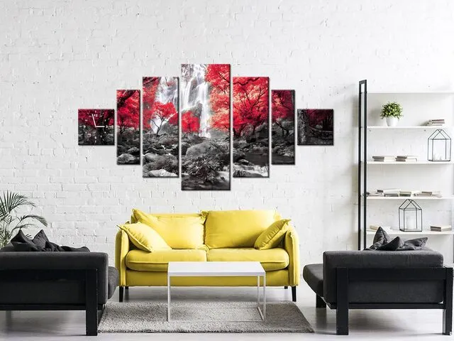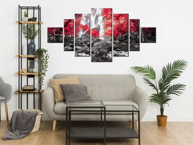 Úvod » Obrazy » Obrazy s hodinami » Obraz s hodinami na plátne Jesenný vodopád