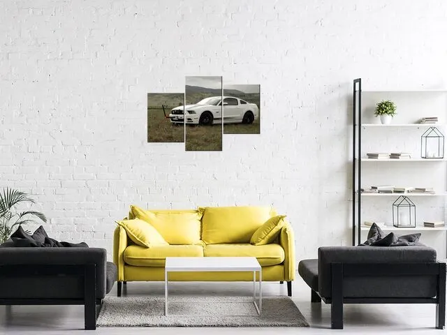 ZP907A_4AS Obraz s hodinami na plátne Mustang GT V8 - Brett Levin |
