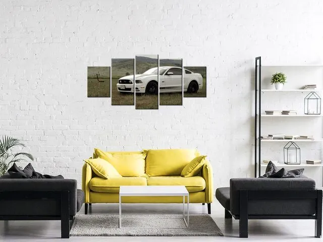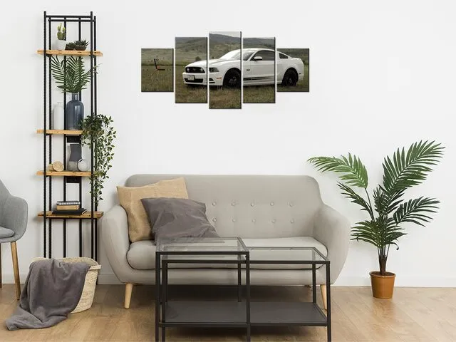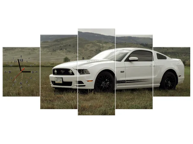 ZP907A_3K Obraz s hodinami na plátne Mustang GT V8 - Brett Levin |