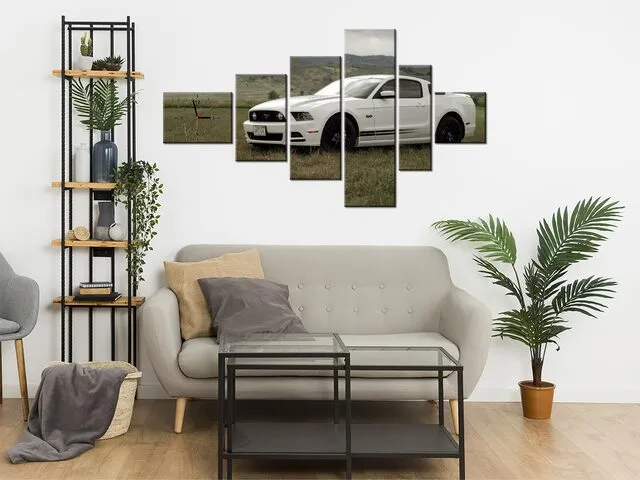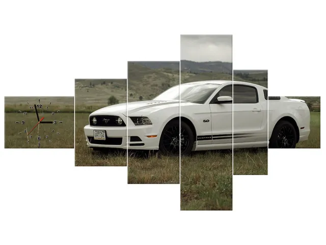 ZP907A_3K Obraz s hodinami na plátne Mustang GT V8 - Brett Levin |