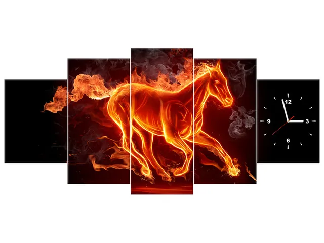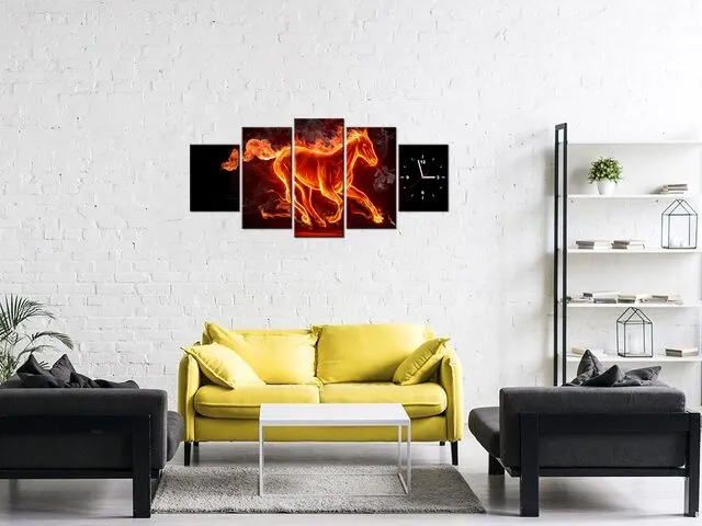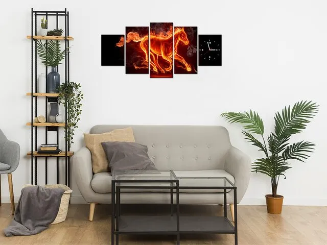 Úvod » Obrazy » Obrazy s hodinami » Obraz s hodinami na plátne Ohnivý kôň
