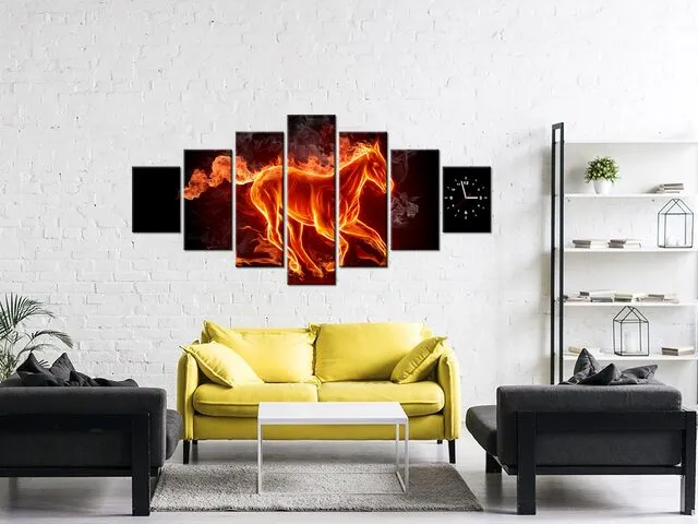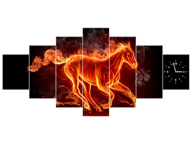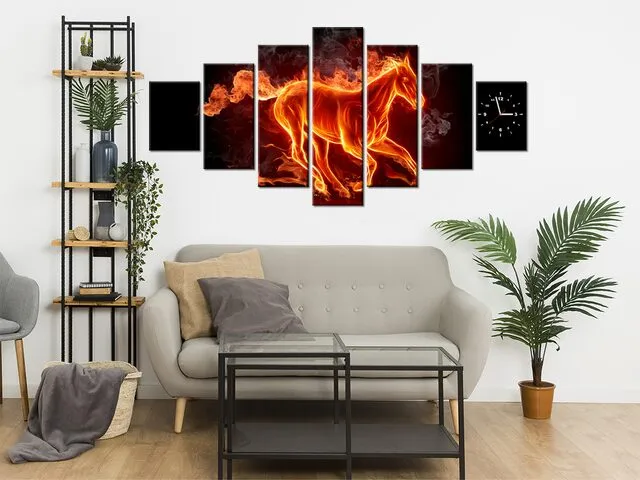 Úvod » Obrazy » Obrazy s hodinami » Obraz s hodinami na plátne Ohnivý kôň