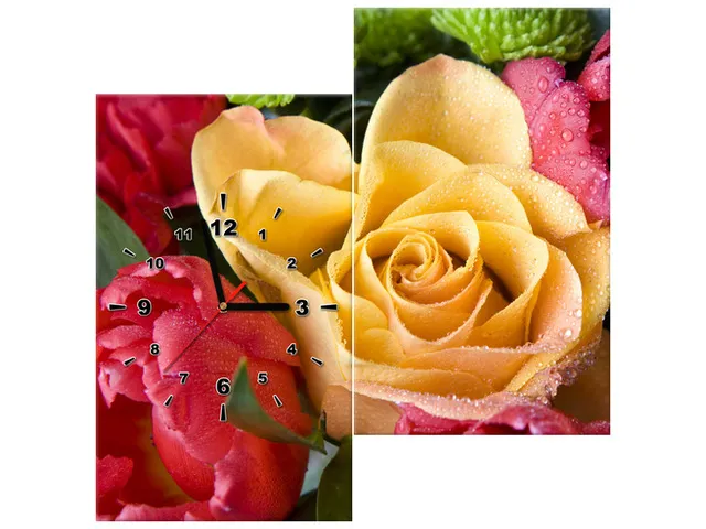 Úvod » Obrazy » Obrazy s hodinami » Obraz s hodinami na plátne Orosená ruža