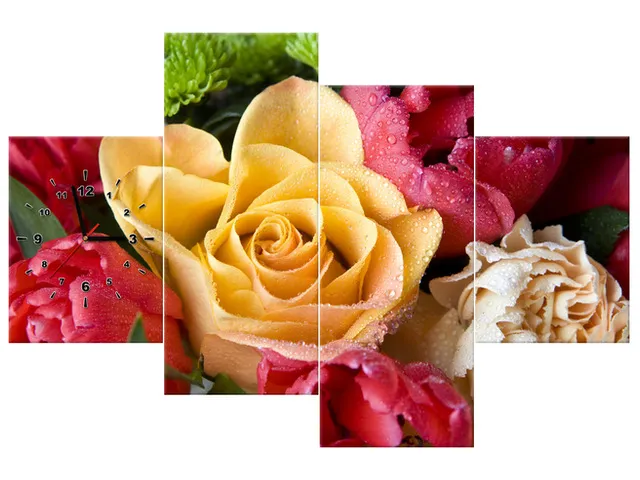 Úvod » Obrazy » Obrazy s hodinami » Obraz s hodinami na plátne Orosená ruža