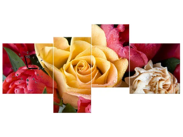 Úvod » Obrazy » Obrazy s hodinami » Obraz s hodinami na plátne Orosená ruža
