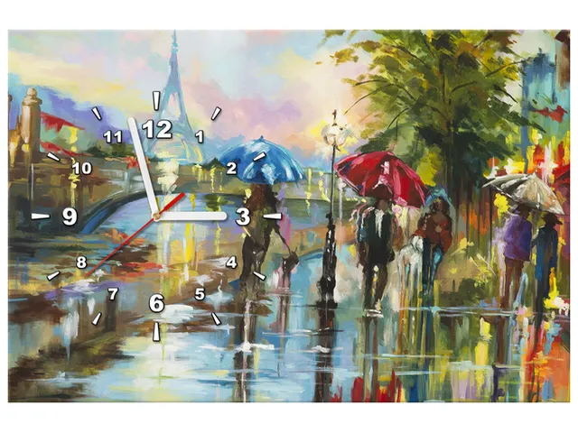 Úvod » Obrazy » Obrazy s hodinami » Obraz s hodinami na plátne Paríž v daždi
