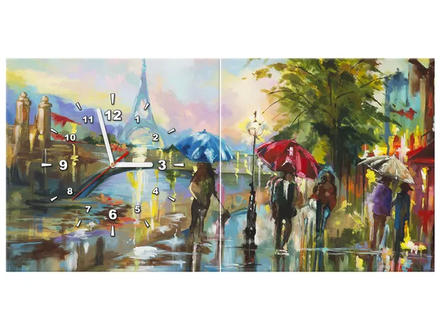 Úvod » Obrazy » Obrazy s hodinami » Obraz s hodinami na plátne Paríž v daždi