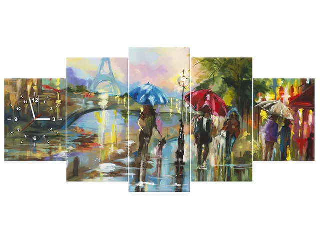 Úvod » Obrazy » Obrazy s hodinami » Obraz s hodinami na plátne Paríž v daždi