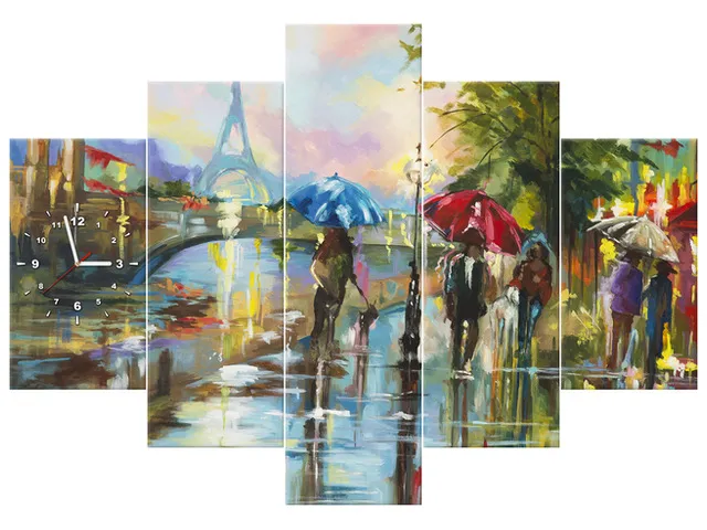 Úvod » Obrazy » Obrazy s hodinami » Obraz s hodinami na plátne Paríž v daždi