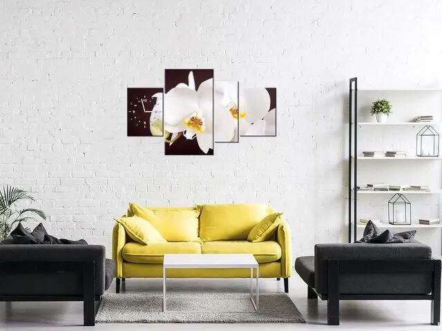 Úvod » Obrazy » Obrazy s hodinami » Obraz s hodinami na plátne Pekná orchidea