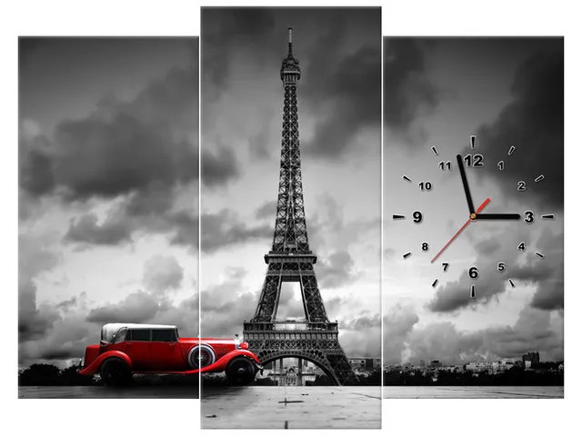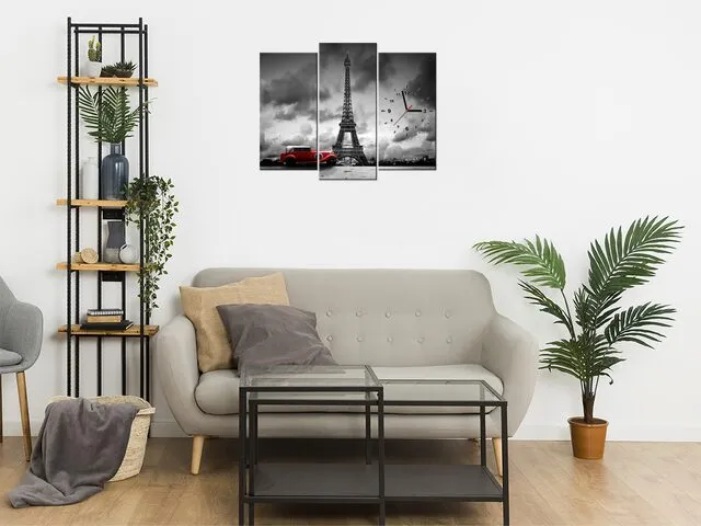 ZP2082A_3K Obraz s hodinami na plátne Pohľadnica z Paríža |