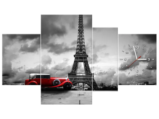 Obraz s hodinami na plátne Pohľadnica z Paríža