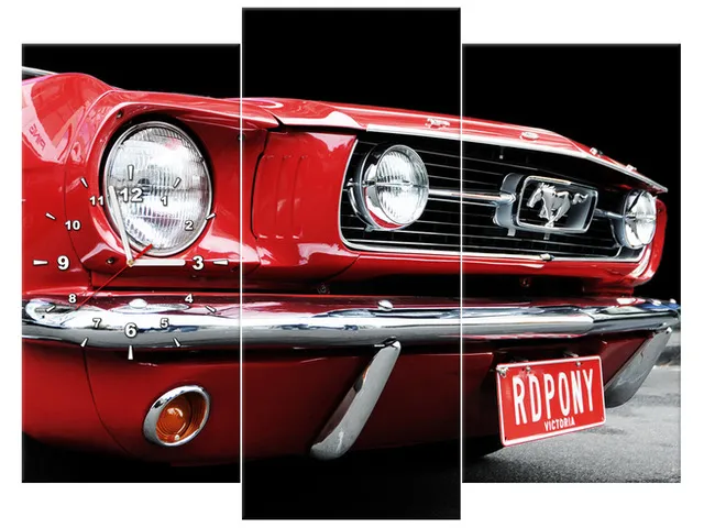 ZP920A_3V Obraz s hodinami na plátne Red Mustang - Y |