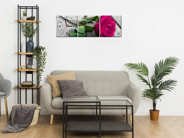 Úvod » Obrazy » Obrazy s hodinami » Obraz s hodinami na plátne Ružová ruža na moste