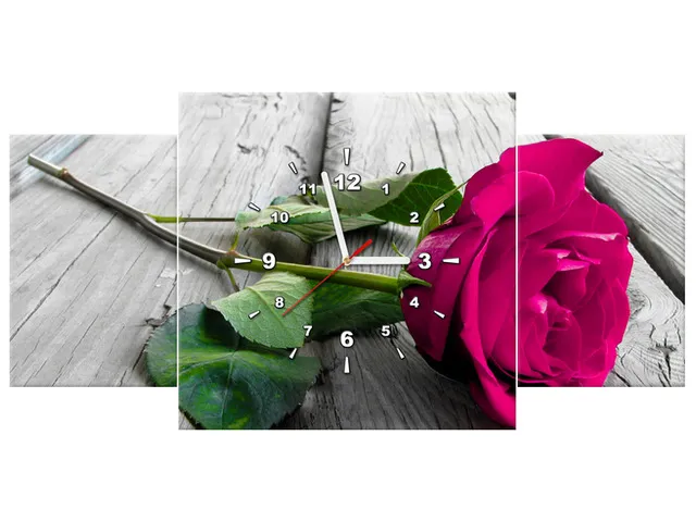 ZP1768A_3AX Obraz s hodinami na plátne Ružová ruža na moste |