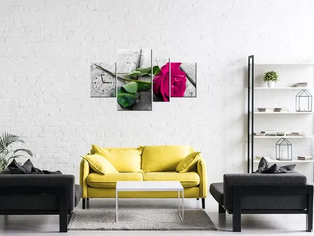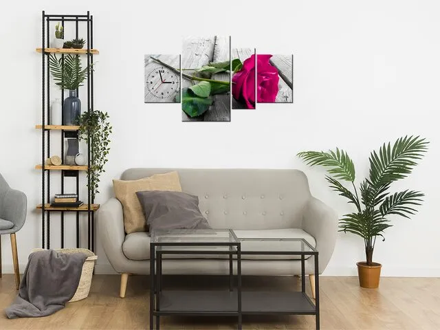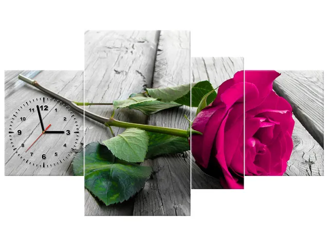 Úvod » Obrazy » Obrazy s hodinami » Obraz s hodinami na plátne Ružová ruža na moste