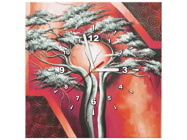 Obraz s hodinami na plátne Šarlátový strom