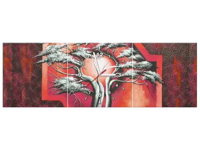 Obraz s hodinami na plátne Šarlátový strom