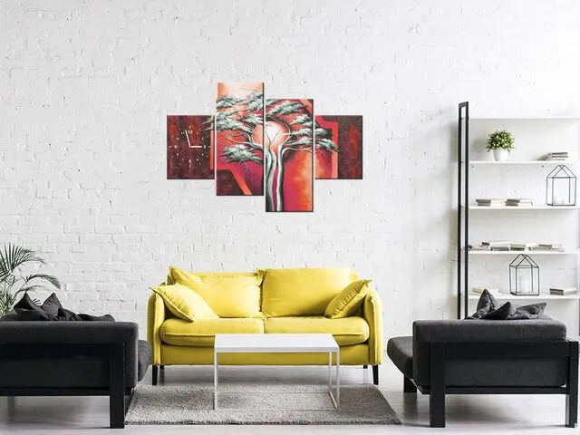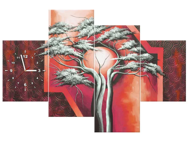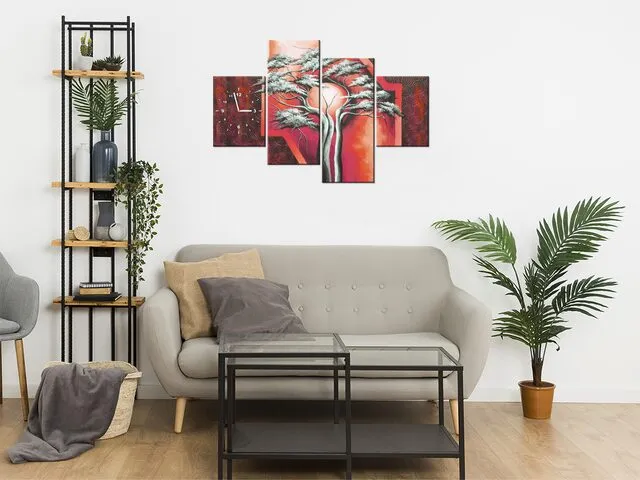 Obraz s hodinami na plátne Šarlátový strom