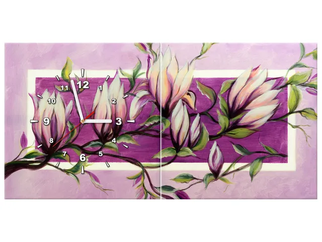 Úvod » Obrazy » Obrazy s hodinami » Obraz s hodinami na plátne Sladkosť magnólie