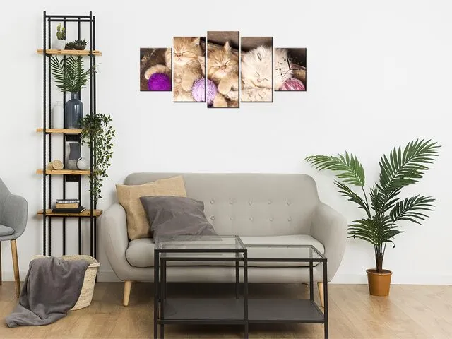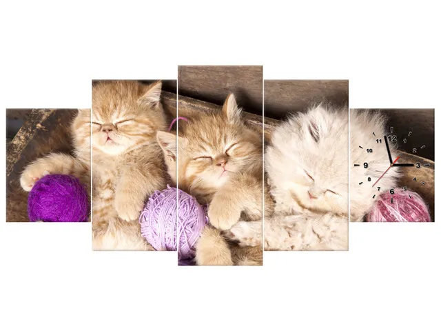 Úvod » Obrazy » Obrazy s hodinami » Obraz s hodinami na plátne Spiace mačiatka v miske