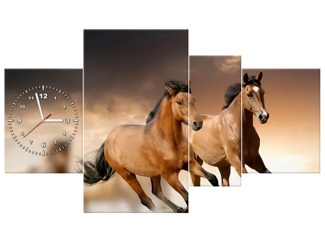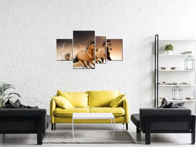 Úvod » Obrazy » Obrazy s hodinami » Obraz s hodinami na plátne Stádo koní