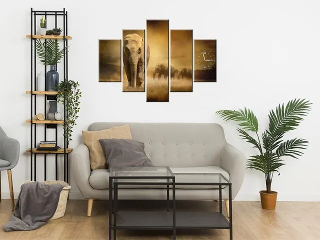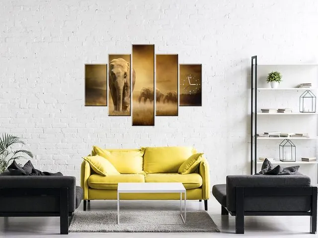 Úvod » Obrazy » Obrazy s hodinami » Obraz s hodinami na plátne Vandrujúce slony