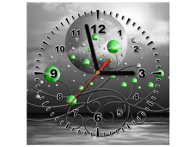Úvod » Obrazy » Obrazy s hodinami » Obraz s hodinami na plátne Zelené gule na sivom pozadí