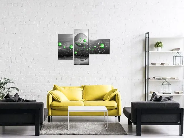 Barion Pixel Obraz s hodinami na plátne Zelené gule na sivom pozadí