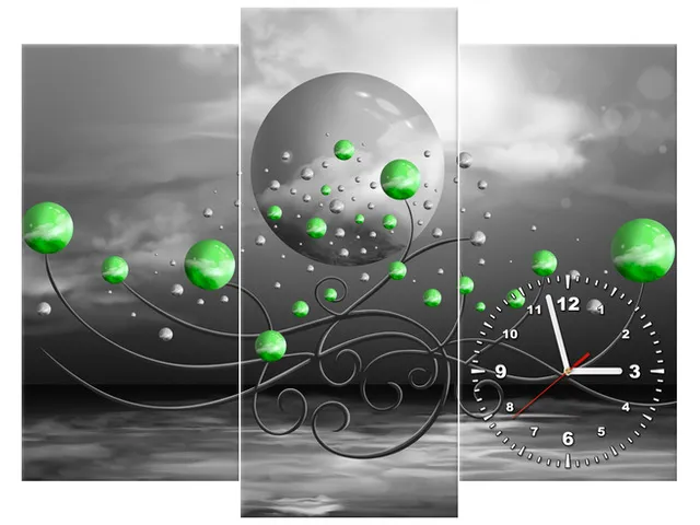 Úvod » Obrazy » Obrazy s hodinami » Obraz s hodinami na plátne Zelené gule na sivom pozadí