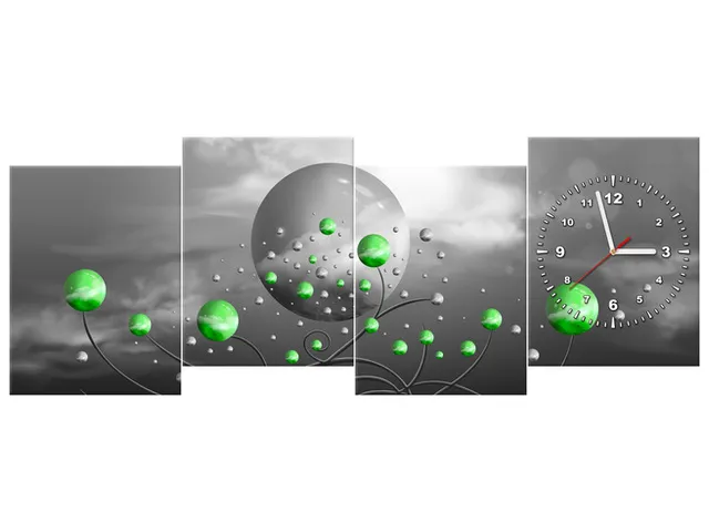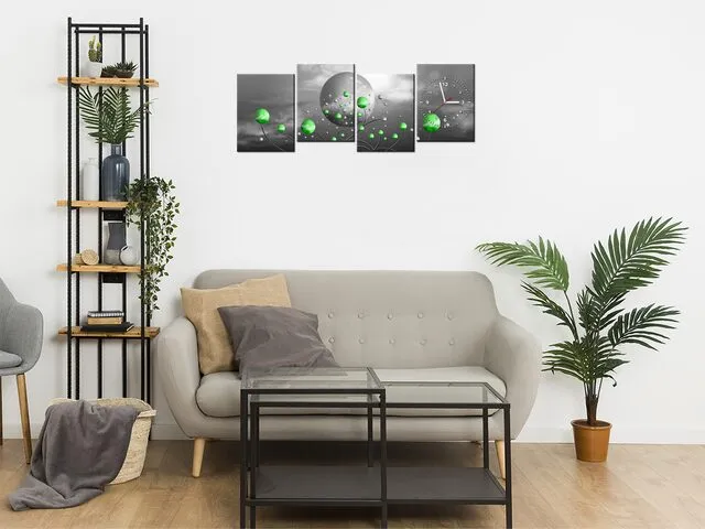 ZP5592A_3K Obraz s hodinami na plátne Zelené gule na sivom pozadí |