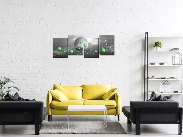 Úvod » Obrazy » Obrazy s hodinami » Obraz s hodinami na plátne Zelené gule na sivom pozadí