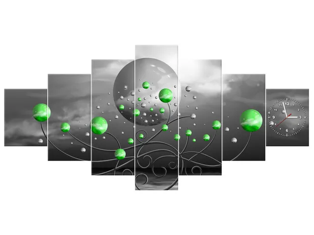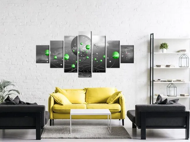 Úvod » Obrazy » Obrazy s hodinami » Obraz s hodinami na plátne Zelené gule na sivom pozadí
