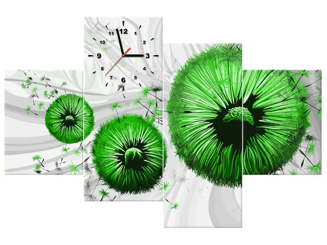 Úvod » Obrazy » Obrazy s hodinami » Obraz s hodinami na plátne Zelené púpavy 2