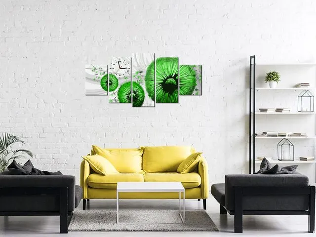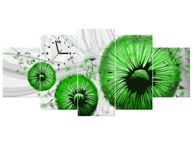 Úvod » Obrazy » Obrazy s hodinami » Obraz s hodinami na plátne Zelené púpavy 2