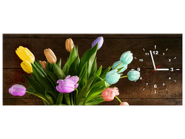 Úvod » Obrazy » Obrazy s hodinami » Obraz s hodinami na stenu Farebné tulipány