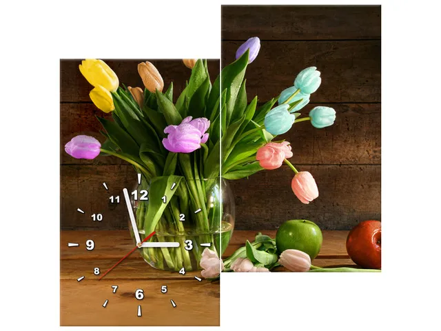 Úvod » Obrazy » Obrazy s hodinami » Obraz s hodinami na stenu Farebné tulipány