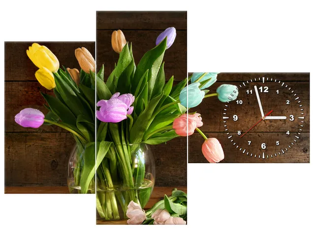 Úvod » Obrazy » Obrazy s hodinami » Obraz s hodinami na stenu Farebné tulipány