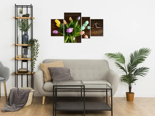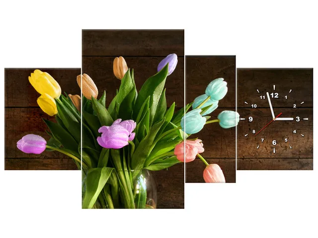 Úvod » Obrazy » Obrazy s hodinami » Obraz s hodinami na stenu Farebné tulipány