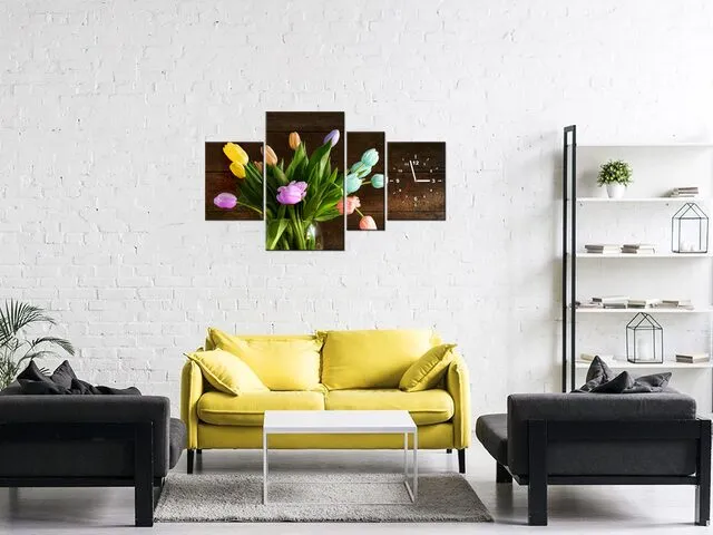Barion Pixel Obraz s hodinami na stenu Farebné tulipány