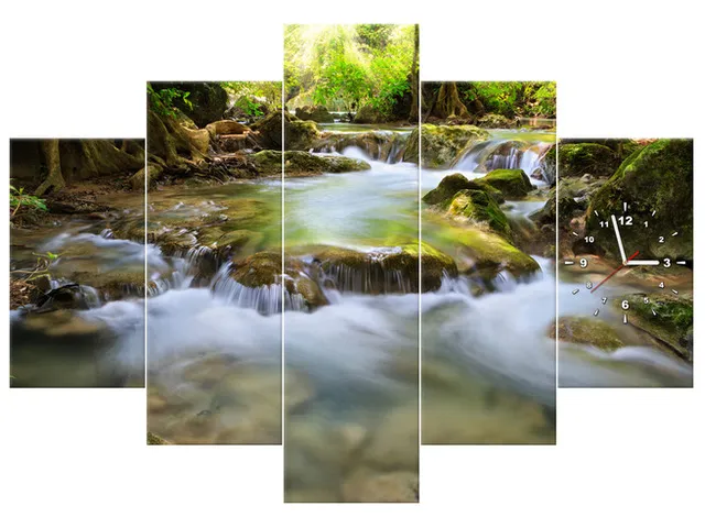Úvod » Obrazy » Obrazy s hodinami » Obraz s hodinami na stenu Horský potôčik