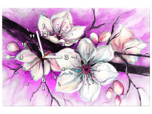 Úvod » Obrazy » Obrazy s hodinami » Obraz s hodinami na stenu Puky višne vo fialovej farbe