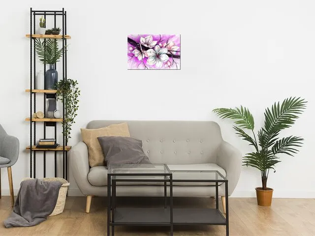 Obraz s hodinami na stenu Puky višne vo fialovej farbe
