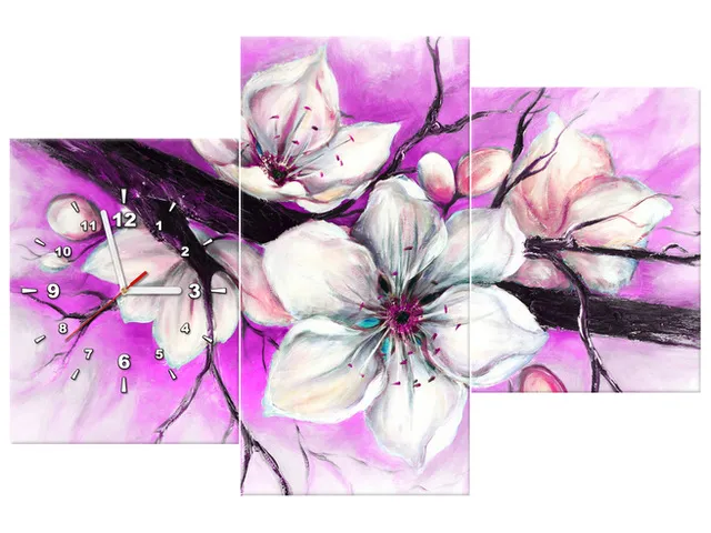 Úvod » Obrazy » Obrazy s hodinami » Obraz s hodinami na stenu Puky višne vo fialovej farbe