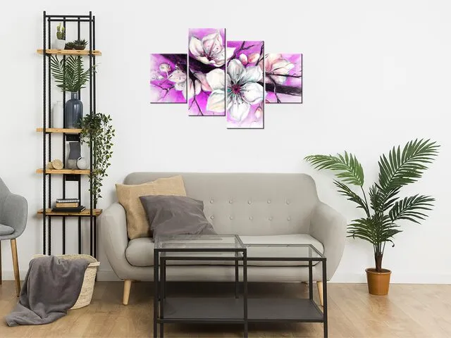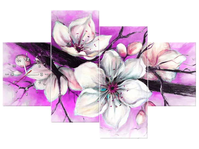 Úvod » Obrazy » Obrazy s hodinami » Obraz s hodinami na stenu Puky višne vo fialovej farbe
