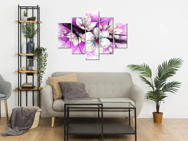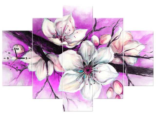 Úvod » Obrazy » Obrazy s hodinami » Obraz s hodinami na stenu Puky višne vo fialovej farbe