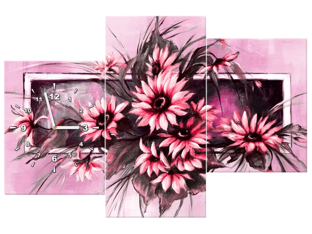 Úvod » Obrazy » Obrazy s hodinami » Obraz s hodinami na stenu Slnečnice v ružovej farbe