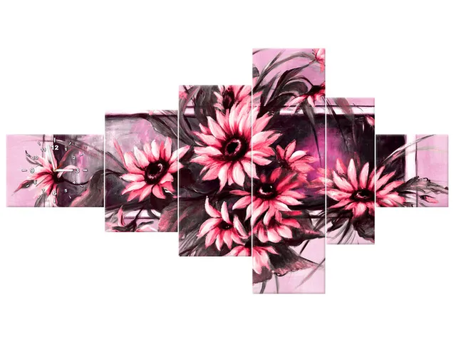 Úvod » Obrazy » Obrazy s hodinami » Obraz s hodinami na stenu Slnečnice v ružovej farbe