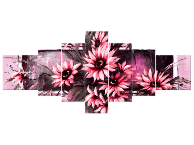 Úvod » Obrazy » Obrazy s hodinami » Obraz s hodinami na stenu Slnečnice v ružovej farbe