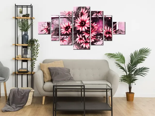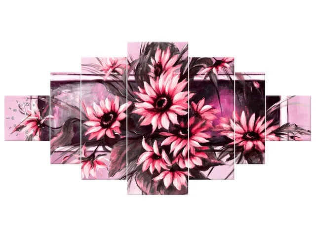 Úvod » Obrazy » Obrazy s hodinami » Obraz s hodinami na stenu Slnečnice v ružovej farbe
